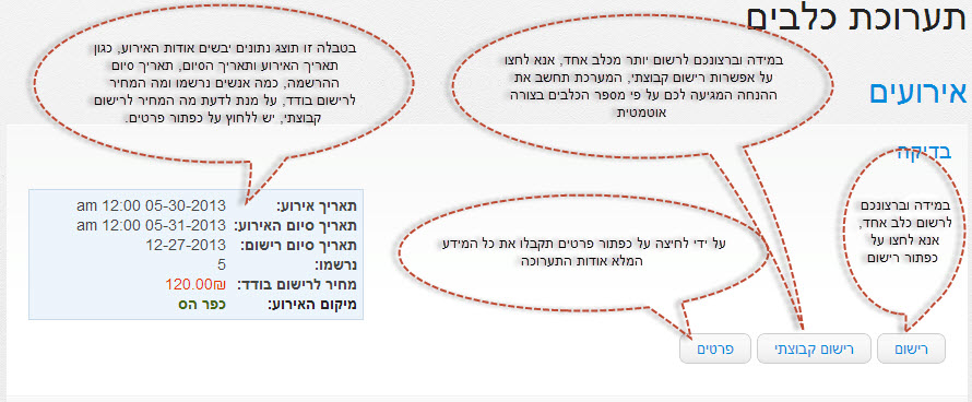 לאחר מכן תועברו לעמוד הרישום בו תמצאו את הנתונים המלאים אודות התערוכה, מיקום התערוכה, שמות השופטים ומחיר הרישום,